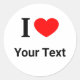 Personalised I ❤️ I LOVE I HEART 2 Classic Round Sticker