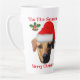 Fun custom personalised Christmas coffee mug printed with dog face picture and name initial. Great Christmas gift idea for friends and family.