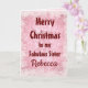 Pretty snow and frost design personalised Merry Christmas to my Sister greeting card.