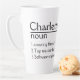 Personalise this Latte Mug with any name, and 3 points below. The word "noun" is a fixed part of the design .