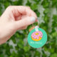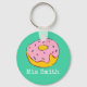 Food art with hand drawn illustration of a pink icing doughnut. Cute food design with personalised name. Gift idea for girls.