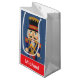Colourful personalised Christmas gift bag for kids with festive nutcracker soldier dressed in red and blue uniform beating a drum. Personalised on front and back.