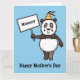 This sweet little illustration shows a cute panda wearing a party hat and holding a personalised banner.