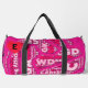 Personalised netball gift idea pink duffle bag with heart design and name initial. Great gift idea for netball players.
