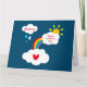 A wonderful brightly coloured weather themed pattern including a rainbow, white fluffy clouds, a drizzle of rain and sunshine.