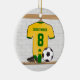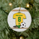Personalised soccer jersey yellow green ceramic ornament