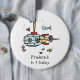 A sweet illustration of a submarine surrounded by sealife.This item can be personalised with a name, or the name can be deleted to leave it plain.