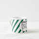 Cute espresso cup with green and white stripes and personalised take-out coffee cup image.