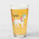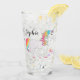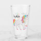 Custom personalized colourful unicorn themed drinking glass with name. Customisable unicorn design gift idea.