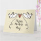 An illustration of 2 beautiful doves holding flowing ribbon with a love heart attached.