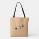 Classy Personalizable 3-Initial Tote Bag=Tan with Black Letters and Handle