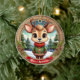 Personalizable cute reindeer character Art 🦌🎄 Ceramic Ornament