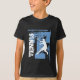 Personalizable tennis t shirt for boys Cool sportswear clothing for tennis players and fans. Personalize with name and / or monogram initial letter. Fun sports clothes for athletic boys and girls. Classic blue and white colours with silhouette of a player folding a racquet playing a forehand shot.