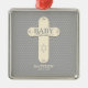 Personalize, Baby Dedication Cream & Grey Cross Metal Ornament