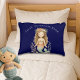 Personalize Boho Girl Mermaid Navy Blue Round Accent Pillow