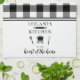 Black and white buffalo plaid personalize design featuring kitchen utensils and the quote, "kitchen is the heart of the home."