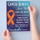 Personalize this Leukemia Benefit flyer with your own words. Have an upcoming cancer benefit, fundraiser, awareness walk, run or special cancer event? Flyers are a perfect way to spread the word about your cause. It also features a bold orange ribbon to symbolize Leukemia Awareness. Change the text, type in your own words and make a special custom flyer for your personal cause. Note: The back of the flyer is intentionally left blank for our customers to choose their own image, photos, etc.