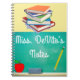 This notebook makes a fun and thoughtful gift for the teacher in your life. Personalize the cover with teachers name. Reads: Miss. (insert name) notes. Has an illustration of books, apple and chalkboard.