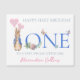 Easily customize this Peter the Rabbit first birthday design with a child's name.