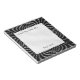 A fractal, graphic design of a black and white chequered pattern that has been symmetrically distorted to create this unique geometric border. The top of the note pad has the caption,"From the desk of..." and the bottom has a text template to add a name.