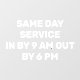 Easily customize this Personalize Dry Cleaners Fast Drop Off Pick Up Window Cling with the services that you provide. Just click next to the am and pm times, backspace out and put in your own. Or make it 24 hour service.