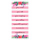 elegant looking rack card with pastel pink striped on both sides. water colour floral bunches gold overlapping border enclosing you initial and name. hit personalize button to add you initial, name and other info.