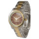 Very good quality watch that looks good whether dressing up or down. The band is sturdy. The watch is rather large so might not work for smaller folks. Recommended as a good gift. Printing is just a touch light but adds a nice touch of personalization.