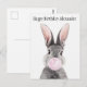 Personalize Gray rabbit blowing pink bubble gum Postcard