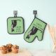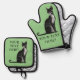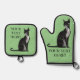 Personalize Green Cat Edit Name Text Gift Oven Mitt & Pot Holder Set