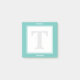 A simple teal and white geometric square design with three (3) text templates: one on the top; "NOTES:", the centre for a large faded initial, and the bottom for a name. A stylish, minimalist design for your notes at home or the office. They also make great party favours. NOTE: If you want to remove any of the text, replace it with a blank space in the template.