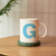 Personalize Modern Script Blue Initial Monogram Coffee Mug