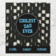 Show him he is the coolest on Father's Day, coolest dad ever saying in a black circle with blue fonts in a black and white abstract squares background.You can enter his name on bottom using the template.