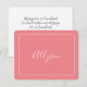 Personalize your name in white script text on peach background with message on back, or leave blank for hand written note.
