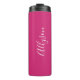 Personalize Name White Script Vertical, Fuchsia Thermal Tumbler