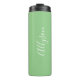 Personalize Name White Script Vertical, Sage Thermal Tumbler
