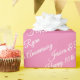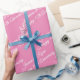 Personalize names, Happy Anniversary in white script on Pink Background Wrapping Paper. Just add a bow.