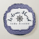 Personalize Navy Blue and White with Ship Wheel Round Pillow