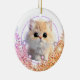 Elegant pretty sparkling Christmas pink gold pinetrees with cute kitty! Enjoy customizing your ornament with text or your own photo!