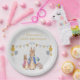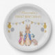 Personalize Peter rabbit gray linen 1st Birthday Paper Plate