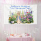 Personalize this Peter the Rabbit flower garden design for a first birthday party