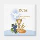 What a wonderful congratulations gift, souvenir, giveaway and party essential about RCIA! A beautiful illustration of sacrament symbols, grapes, bread, wheat, a chalice and a white dove that represents the Holy Spirit. This you need to congratulate someone special on their initiation.