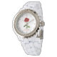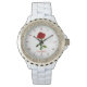 Personalize red rose with leaves painting art on any watches for women, man and kids. For any occasions. Customize your name/text.