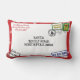 This Personalize Christmas pillow is a Santa letter that you can personalize with your family name in the return address area and you can make your own Santa address or Merry Christmas message in the send address area. This design is a red edged envelope with snowflakes, two Christmas mailing stamps, and three postal marks. A super cute Christmas pillow to celebrate the Christmas season with festive holiday cheer.