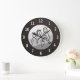 A simple round wall clock where the time circles around you or your beloved ones! Add your personal photo and this clock will transfer into a valuable item for someone you'd like to honour or surprise! The round frame is coloured black, and digits are white. There exists 9 colour variations of this design - black, blue, pink, purple, lime, orange, white, silver and brass.