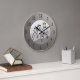 A simple round wall clock where the time circles around you or your beloved ones! Add your personal photo and this clock will transfer into a valuable item for someone you'd like to honour or surprise! The round frame is coloured silver, and digits are black. There exists 9 colour variations of this design - black, blue, pink, purple, lime, orange, white, silver and brass.