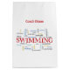Whether it be a man or woman, your swimming coach will appreciate this thank you gift, souvenir, giveaway or party essential. Personalize with his or her name. Red writing in the centre with words associated with the sport are swimming around it!