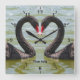 Personalize Two Black Swans birds in heart shape Square Wall Clock