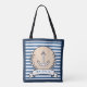 Personalize White Blue Horizontal Stripe Anchor Tote Bag