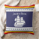 part of the ocean nautical themed decor navy blue, yellow, and red stripes PILLOW on one side and navy on back. nautical designs perfect for coastal living, lake decor ,river decor, nautical, fisherman," fish lover", "kid's room" and more...