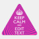 Personalize Your Keep Calm Saying Hot Pink Swirl Triangle Sticker